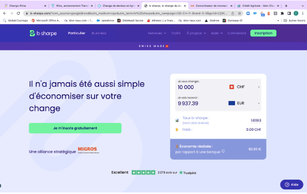 B-sharpe c’est l’historique local de l’étape. Créée en 2006 par Jean-Marc Saber, la plateforme 100% genevoise est maintenant alliée au géant Migros. Une application existe depuis quelques mois. Une fois que vous êtes inscrit, le fonctionnement est simple : vous transférez vos francs suisses sur le compte de B-Sharpe en Suisse, à réception ils changent vos devises en euro et vous transfèrent les fonds sur votre compte en Euro. Inconvénient: vous ne connaissez ni ne maitrisez le cours appliqué et comme le cours peu fluctuer beaucoup dans une journée. Pour éviter le problème, B-Sharpe met à disposition un numéro de téléphone pour réserver un cours directement avec un spécialiste. Le plateforme promet un transfert rapide des fonds sur votre compte euro et permet de mettre en place système d’alerte. Pour les frontaliers qui ne souhaitent pas ouvrir de compte bancaire en Suisse, B-sharpe peut recevoir leurs salaires et les transférer directement.